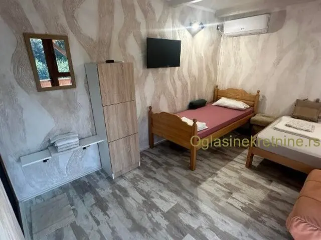 Lepa nova brvnara u Vrdniku se izdaje na dan ili vise . Cena zavisi od broja nocenja ali okvirno 35 evra po danu Ima sve neophodno. Nalazi se u šumakom ambijentu okruzena borovom sumom. U ponudi imamo i jeftinije apartmane. Vise informacija na www.smestajvrdnik.net Ili 069 4437 695