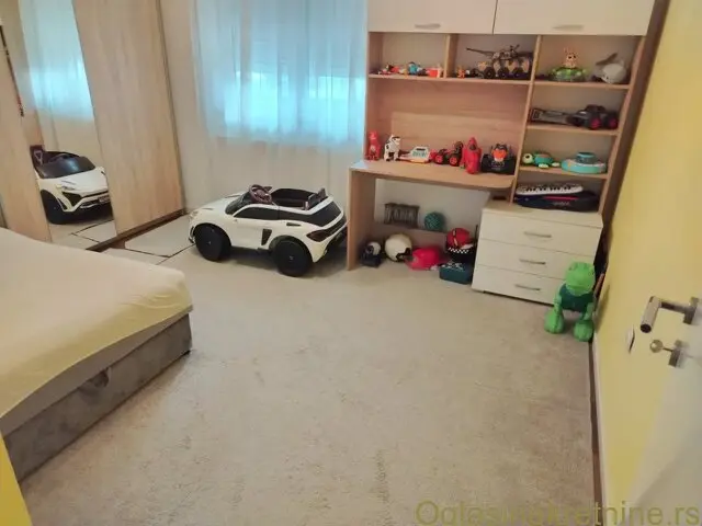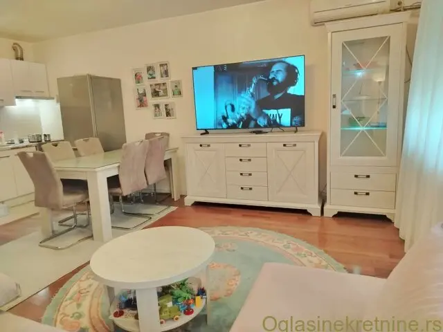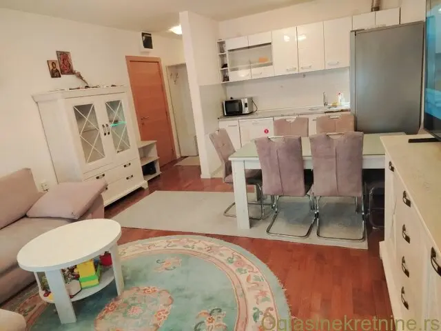 Aluminijumske roletne, komarnike na svim prozorima, gradjeno termo blokom, toplotne pumpe. Parking ispred zgrade. Naselje ima 50 malih zgradica, planski gradjeno i uredjeno sa puno zelenila.