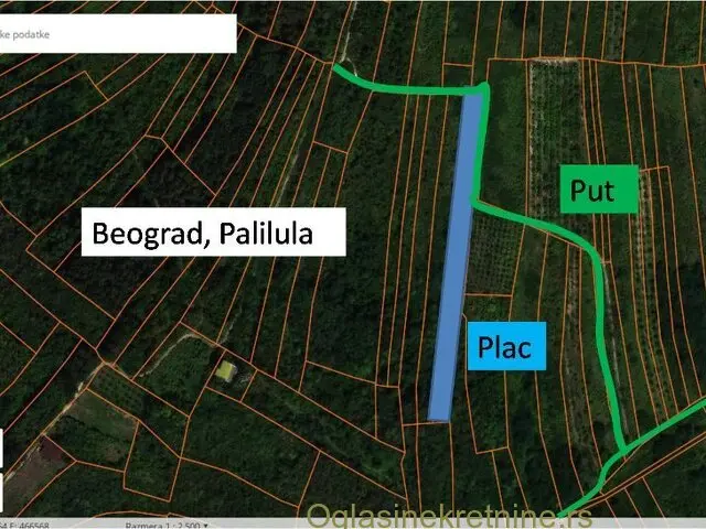 Plac se nalazi na oko 50 m od tornja koji je najviša tačka Beograda. Toranj je vidljiv iz Pančeva, Mirjeva, Višnjice. Do placa vodi zemljani put, obeležena biciklistička staza, duž koje su borovi stari preko 50 godina. Jedan je od najvećih placeva na Paliluli. Udaljen od centra grada (Terazija) manje od 10 km. Veličina 35 ari, dužina preko 150 m, širina oko 23m, deljiv na 6-8 placeva. Dobra investicija u vremenima koja dolaze, vrednost koja raste. Zemljište je ograničen resurs, u beogradskim opštinama pravo blago. Zemljište 5. klasa, može se prebaciti u građevinsko. Plac je pod prirodnom vegetacijom, nezagađen, idealan za ekološke namene. Sa placa se pruža pogled na ceo Banat, do Vršačkog brega. Vlasništvo 1/1.
